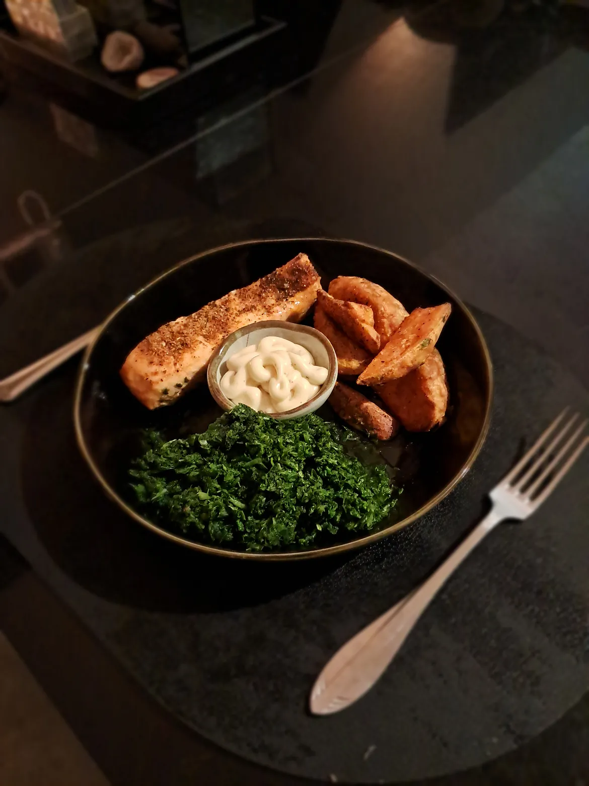 2) Zalmmoot: Kruid op dezelfde manier. Leg de zalm in de airfryer op de huidkant – zo blijft hij van binnen mooi mals en niet te droog.